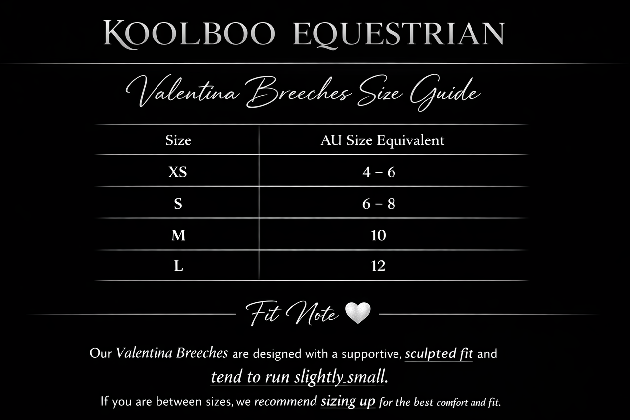 Engineered for the modern rider, the Valentina Breeches combine function, fashion, and freedom of movement — built to keep up with you from stable to competition.
